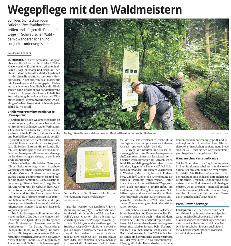 Stuttgarter Zeitung vom 30.08.2025: Wegepflege mit den Waldmeistern