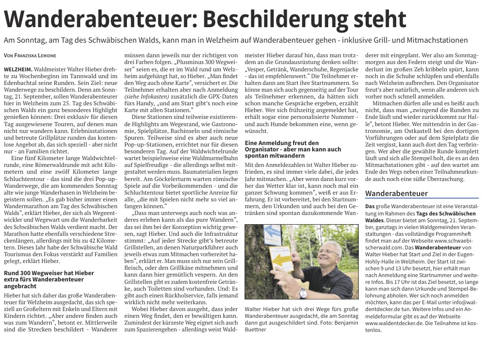 Welzheimer Zeitung vom 17.09.2025: Wanderabenteuer
